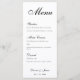 A simple black and white wedding menu: just black text on white background. The names, the title "Menu" and the subtitles are written in an elegant calligraphic script.