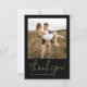 Show your appreciation with the timeless elegance of the Minimalist Wedding Modern Stylish Script Photo Thank You Card. Featuring a sleek black and gold colour palette, this card exudes sophistication and pairs beautifully with classic modern wedding themes. Highlighting a cherished wedding photo, it combines heartfelt gratitude with stylish design to create a keepsake your guests will treasure.