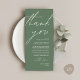Share the love and show your appreciation to your guests, when they sit down at their seat and read this personalised charming thank you place card in forest sage green themed. It's a wonderful way to kick off your special day celebration! This card is sure to set the tone for an unforgettable event. The thank you card features modern design script theme, adding a touch of timeless elegance to your celebration. Designed by TeeshaDerrick
