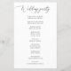 This elegant wedding program features a clean black and white palette with understated script and classic serif fonts. The front lists your order of service, while the back offers space for wedding party names. Perfect for minimalist, traditional, or formal weddings. This customizable program adds a thoughtful and polished touch to your ceremony.