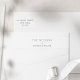 Minimalist wedding return address sticker. Designed to elevate your wedding stationery, this white label with dark lettering adds a personalized and stylish touch to your envelopes. Perfect for sealing wedding invitations, thank-you cards, or keepsake mailings with elegance. The clean design and refined typography make it a beautiful detail for any modern wedding aesthetic.