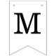 A simple, minimalist bunting flags banner for a black and white wedding, with the names of the bride and groom, with black caps on white background.