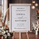 Wedding wedding sign featuring a simple modern design. Customize with your information. Click "click to customize further" to change the font style, size or colour.