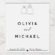 These wedding bottle labels feature a chic signature script and graphic black typography on a white background, with a modern minimalist design.