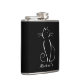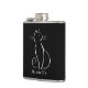 Minimalist white cat on a black background flask. Personalize this elegant flask with your name.