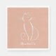 Minimalist white cat on a pink background napkin. Personalize this elegant napkin with your name.