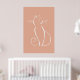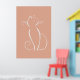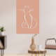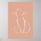 Minimalist white cat on a pink background poster.