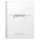 Girly Feminine Minimalist Simple Clean White Monogrammed Name Signature Script Custom Personalized Notebook. These design featuring your first name in a pretty hand lettered style swash tail font typography, with full name template on white background. These are easy to customize and can be used as a Cookbook, Diary Planner, Sketchbook, Journal and more. Also great stylish feminine gift for birthday, mother’s day, bridal shower, wedding, sweet 16 birthday party and baby shower, business, graduation, back to school, professional work and for anyone who likes simple clean things.