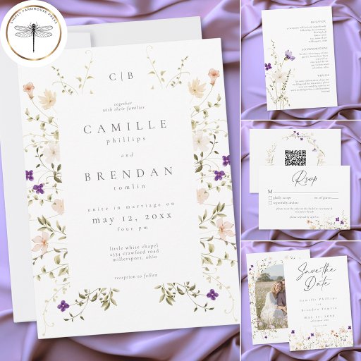 This minimalist wildflower romantic botanical wedding photo save the date design features delicate florals, soft neutral tones, and elegant typography. Perfect for couples seeking a timeless, romantic style, it offers a refined, modern look that elevates your wedding aesthetic. Created by Simply Farmhouse Press.