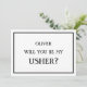 Minimalist will you be my usher proposal card. Simple wedding proposal card for the grooms party, black and white design. Ask your friend in style to be the usher. You can change the text for bestman , groomsmen, page boy..