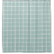 This shower curtain features a minimalist pattern of a window pane grid in white on seafoam for a modern look.