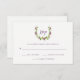 These stylish wedding RSVP cards feature a modern watercolor wreath decorated with purple grapes, green leaves, and vines. There is a clean, white background. This elegant and simple response card is perfect for your minimalist, wine themed wedding. We have used art from LABFcreations.