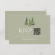 This is a Minimalist Green Winter Snowy Pine Trees QR Code Wedding RSVP Card!