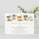This lovely Baby Shower By Mail invitation features adorable illustration of sweet woodland animals and elegant watercolor greenery in green and gold