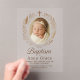 This elegant and minimalistic acrylic baptism invitation features a soft neutral background, a centred baby photo framed with delicate botanical elements, and a subtle cross symbol above. The transparent look adds a modern, clean touch—perfect for sophisticated and faith-inspired celebrations. Customize with your baby's name, event details, and RSVP.