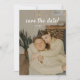 Minimalistic Beige Floral Leaf Wedding Photo Save the Date. Personalize with a favourite couple or engagement photo, your names, and future wedding date on the front, and add additional details for guests on the back.