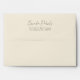 Whimsical minimalistic modern, light beige background, customizable black script calligraphy, elegant wedding envelope design. The pale beige with customizable black typography evokes a feel of classic elegance.