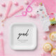 Minimalistic Black & White Custom Graduation Party Paper Plates. Designed with "grad" in script lettering, customize these paper plates with graduate's name, high school or college, and year of graduation.