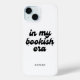 A minimalistic, black and white "in my bookish era" phone case for book lovers. Personalize this item with your name, initials, or custom text at the bottom of the case. Feel free to change the colour of the phone case by clicking on "personalize this design," then "edit using design tool." If you need help making any changes, please message the designer.