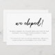 Minimalistic Black & White Script Wedding Elopement Announcement. Customize with your elopement message for family and friends on the front, and add bride and groom initials to the back of the card.