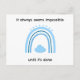 This beautifully hand-drawn design features a minimalist blue rainbow with a fluffy white cloud. The inspiring quote "It always seems impossible until it's done" will motivate and encourage anyone who sets their eyes on it. The blue colour of the rainbow represents tranquillity and peace, while the cloud symbolizes the limitless potential of our dreams. Perfect for those who need a little extra push to achieve their goals and aspirations, this design will inspire and uplift anyone who receives it.