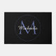Minimalistic blue circle modern monogram with blue initial and white name on black. Personalizable custom name with a serif initial behind on a black colour.