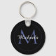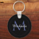 Minimalistic blue circle modern monogram with blue initial and white name on black. Personalizable custom name with a serif initial behind on a black colour.