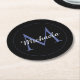 Minimalistic blue circle modern monogram with blue initial and white name on black. Personalizable custom name with a serif initial behind on a black colour.