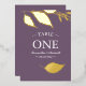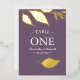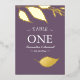 Minimalistic purple table number card frames your details with a border of elegant gold foil foliage over a solid plum purple background. The font is set in classic serif typography. Perfect for elegant garden theme weddings. To see more luxury wedding ideas with by Victoria Grigaliunas visit Do Tell A Belle on Zazzle at www.zazzle.com/dotellabelle