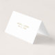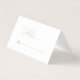 Whimsical minimalistic modern, white background with customizable gold script calligraphy, elegant wedding place escort card design. The white background with customizable gold typography evokes a feel of classic gold-and-white elegance.