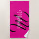 Minimalistic modern monogram initial name hot pink beach towel