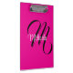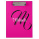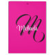Minimalistic modern monogram initial name black white. Personalizable custom name with a cursive initial behind on a hot pink colour.
