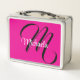 Minimalistic modern monogram initial name hot pink metal lunch box