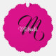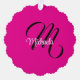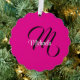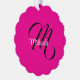 Minimalistic modern monogram initial name hot pink ornament card