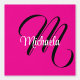 Minimalistic modern monogram initial name black white. Personalizable custom name with a cursive initial behind on a hot pink colour.