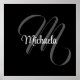 Minimalistic modern monogram initial name black white. Personalizable custom name with a cursive initial behind on a black color.