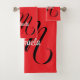 Minimalistic modern monogram initial name red bath towel set