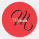 Minimalistic modern monogram initial name black white. Personalizable custom name with a cursive initial behind on a red colour.
