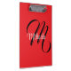 Minimalistic modern monogram initial name black white. Personalizable custom name with a cursive initial behind on a red colour.