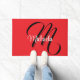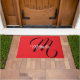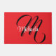 Minimalistic modern monogram initial name black white. Personalizable custom name with a cursive initial behind on a red colour.