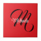 Minimalistic modern monogram initial name black white. Personalizable custom name with a cursive initial behind on a red colour.