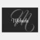 Minimalistic modern monogram initial name black white. Personalizable custom name with a cursive initial behind on a black colour.