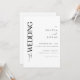 An elegant and minimal white wedding invitation, designed with modern typography and scripts. Feel free to change background colours, text colours, etc., by clicking on "personalize this design," then "edit using design tool." Please message the designer if you wish to have this done for you instead.
