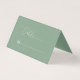 Whimsical minimalistic modern, sage green background with customizable white script calligraphy, elegant wedding place escort card design. The sage green with customizable white typography evokes a feel of classic elegance.