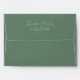 Whimsical minimalistic modern, sage green background, customizable white script calligraphy, elegant wedding envelope design. The sage green background with customizable white typography evokes a feel of classic elegance.