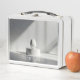 This is a standard metal lunchbox that appears to work just fine. We designed this box ourselves with an uploaded photo and custom text on the front and back. It looks absolutely beautiful except the front of the lunchbox is not centered like it shows in the photo. The print borders don't align with the inset flat part of the box where the preview photo online showed it perfectly centered in there. The back looks nice and centered though.