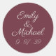 These stickers feature your names against a vibrant colour background. Part of the Minimalst Script Purple Plum Collection.