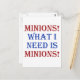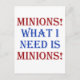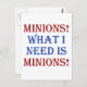 We all want to have are own thrall of followers. This just admits that fact to the world. Reads "Minions! What I need is Minions!" in red and blue print.