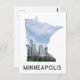 Anyone would love to receive this travel postcard featuring the Minneapolis, Minnesota downtown city skyline in a cutout map of the state of Minnesota!