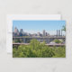 skyline of downtown minneapolis with tenth avenue and northern pacific bridges spanning mississippi river from east river road